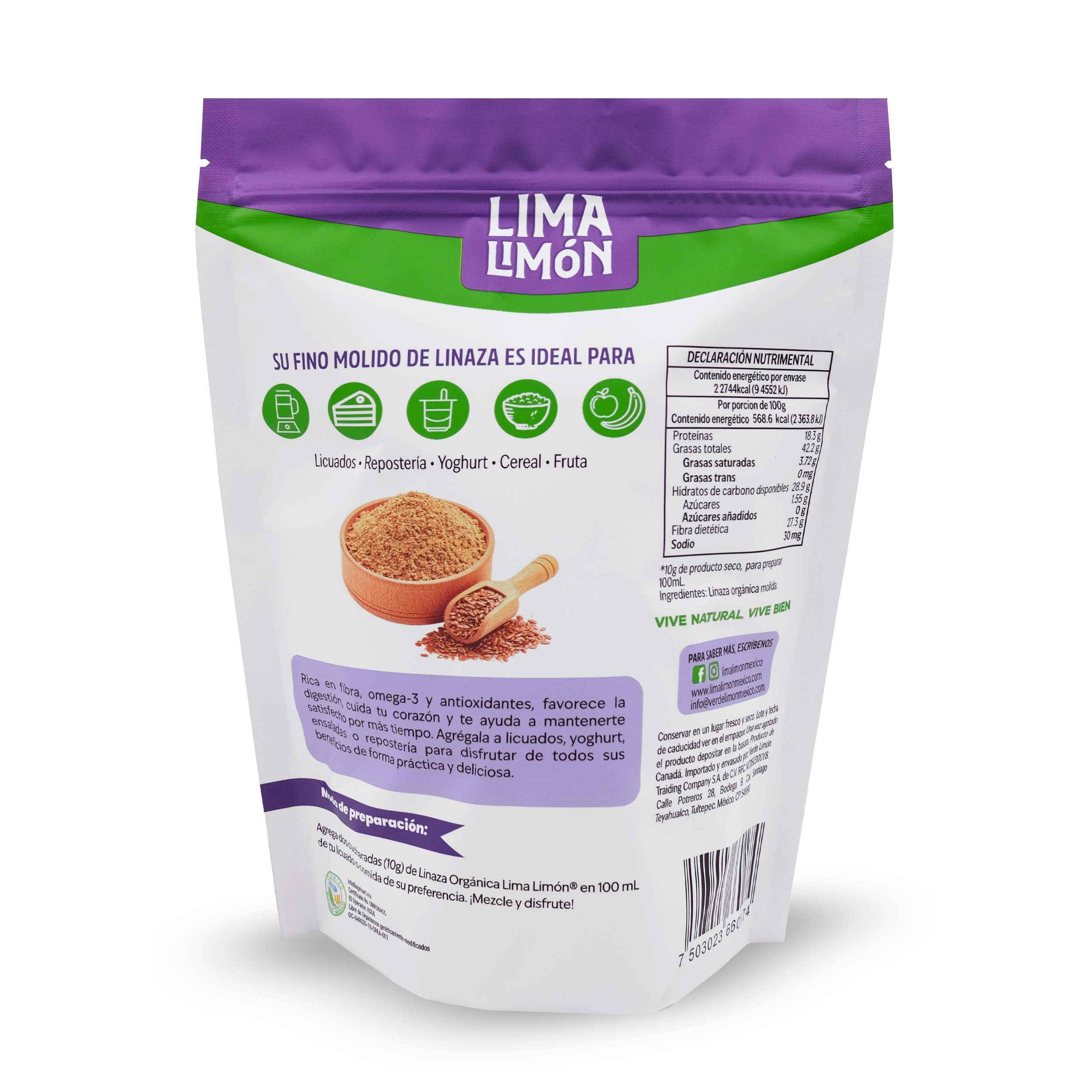 Nuestra linaza molida es ese ingrediente que hace la diferencia. Un superfood perfecto para complementar tu día. Rica en fibra, omega-3 y antioxidantes naturales, la linaza favorece la digestión, cuida tu corazón y te ayuda a sentirte satisfecho por más tiempo. Puedes agregarla a tus licuados, yogur o ensaladas para disfrutar de todos sus beneficios de forma práctica y deliciosa.